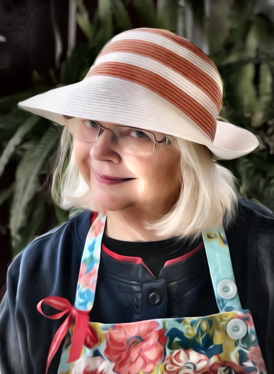 Hi Susan, It's a lovely portrait with beautiful tones on the person. For my eyes, I don't need as strong a background. Perhaps using a polarizer to reduce foliage reflections and then a touch of darkening and desaturation (30% ?) of the background. I tried the darkening and desaturation on the attached image.