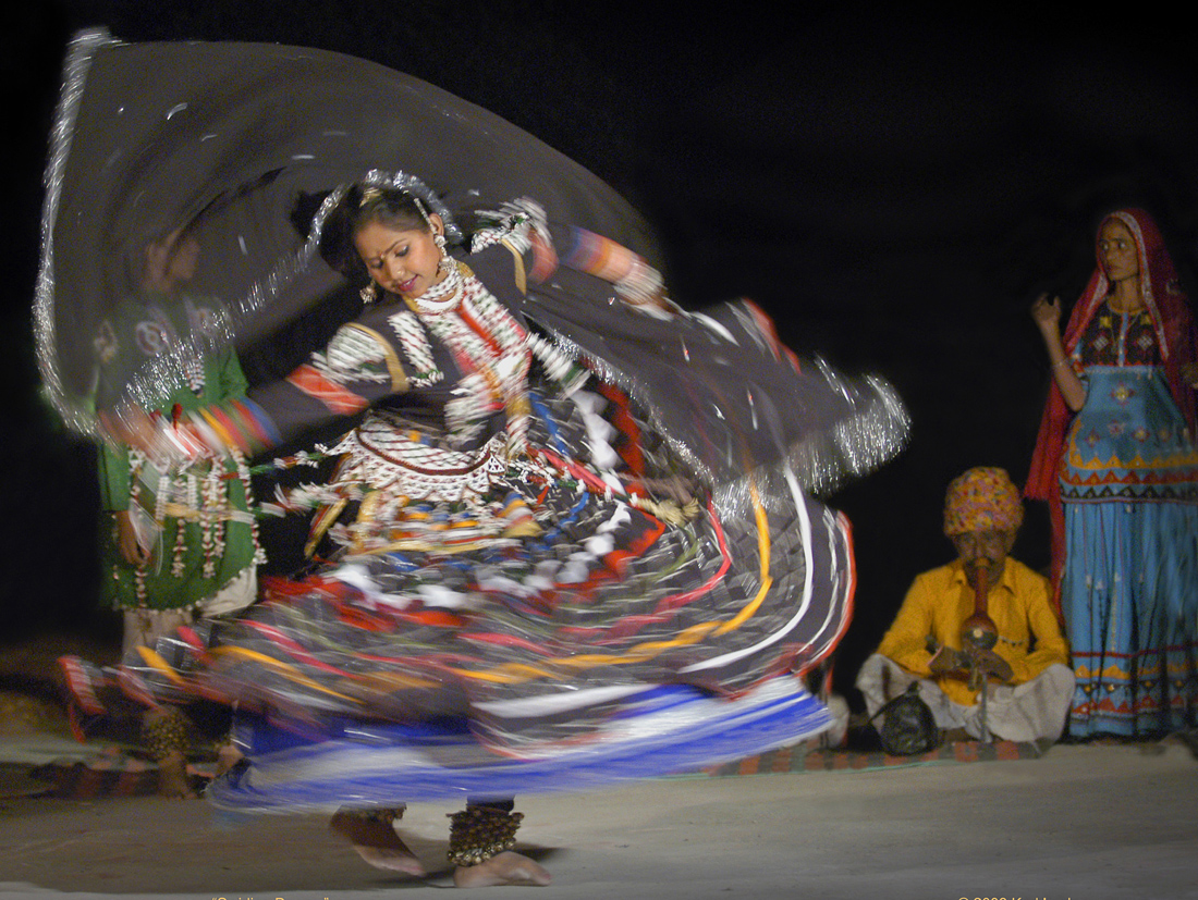 I offer an image here titled 'Swirling Dancer' from the Pushkar Fair in India. The dancer is 'spotting' as she rotates and the exposure was made when her head was steady but her costume mostly a moving blur. The musicians add context.