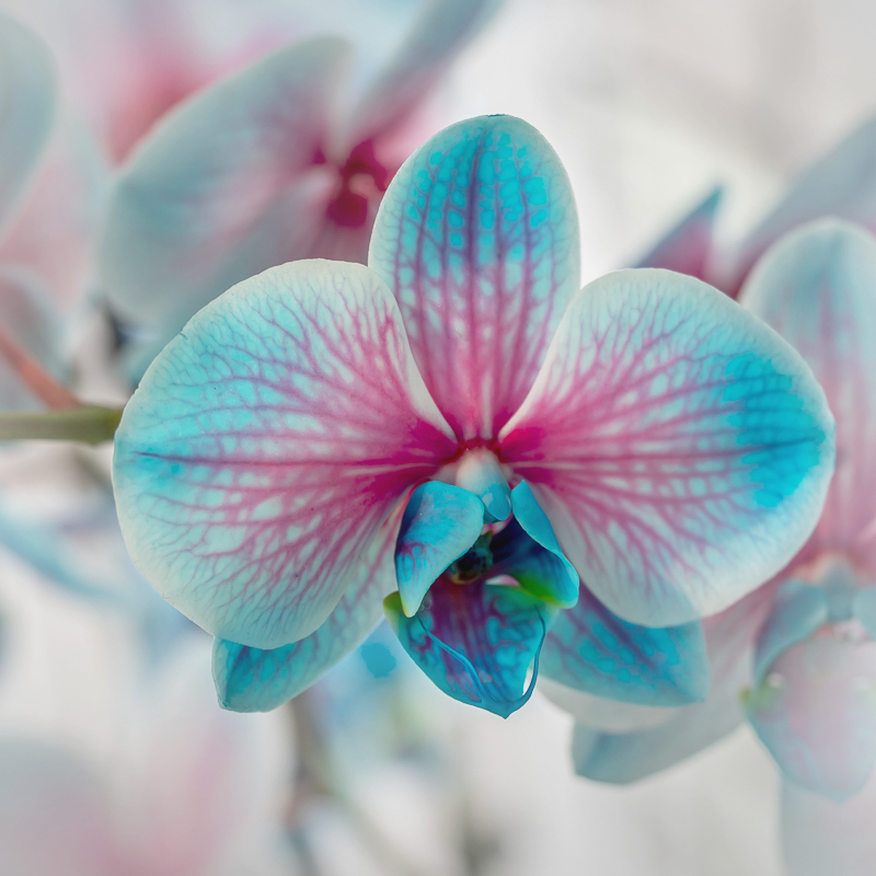 Hi Lauren, I know from our many visits to Longwood Gardens orchid room that the variety can be infinite. I played with the image altering blossom contrast, overall levels, and 30% desaturating the background to make a brighter image with slightly weaker background. The contrast and saturation layers had layer masks to select blossom and background respectively.