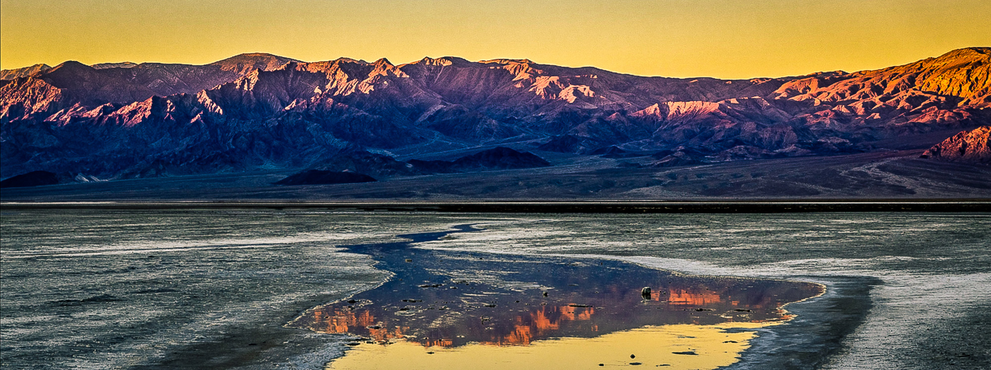 First I like the pano format as it increases the feeling of vastness. In spite of the drama of the moment I feel the image lacks impact. I really like that triangular shaped leading line. It just draws the viewer into the frame.