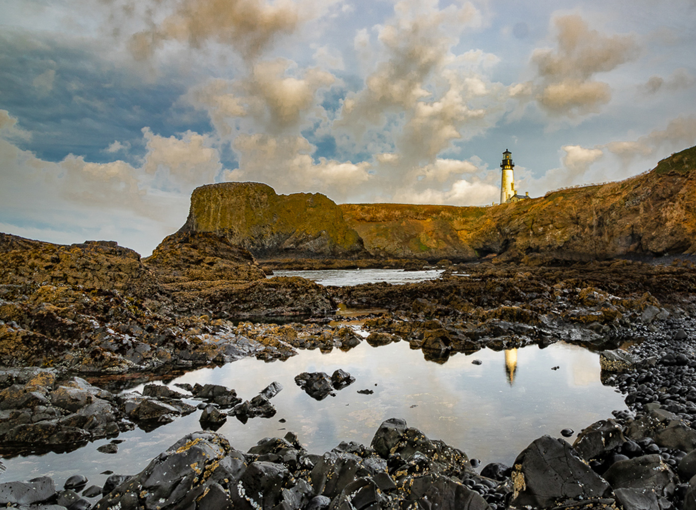 Like everyone else, I really enjoy this scene. The rising angle of the pool makes a nice leading line as does the line of rocks in the water. For me the pool and the lighthouse should be the stars of the show.
