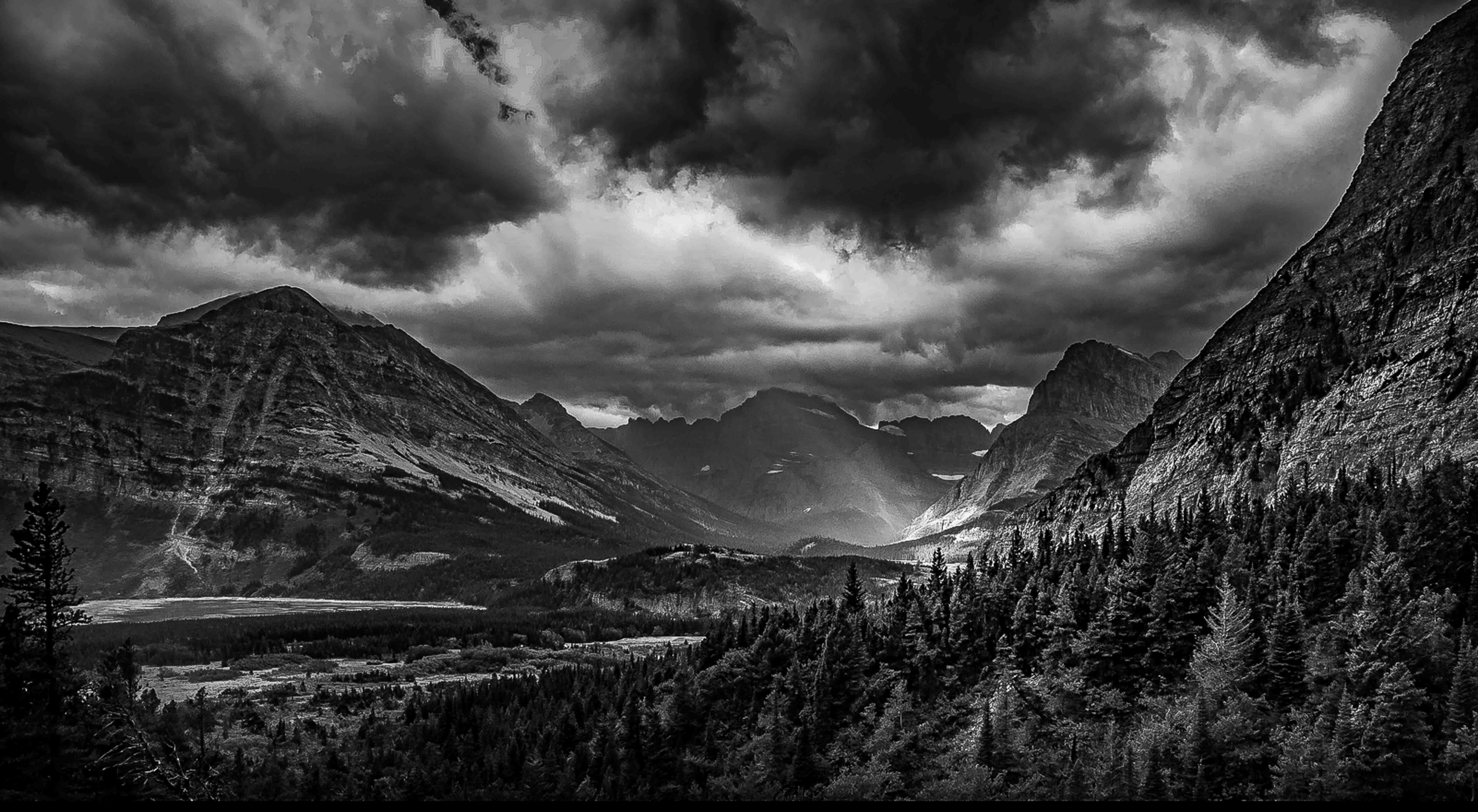 The view is striking and for sure the mountain dominates the scene and the composition greatly contributes to this effect. In this particular instance there seems to be two bright areas that are merged together so the scene becomes center weighted. This sort of locks the eye into the center and the eye stays in one place. I mostly agree with Michael in that there is too much dark shadow. I seems you applied a pretty strong vignette and when added to areas that were already dark, just made them darker. Vignettes often do not work well in landscapes because they create an unnatural feeling to the scene. Making some of the shadows lighter will make the scene less ominous. You might consider dodging some highlights onto the areas the sun strikes the mountain. It would add some life to the scene. |