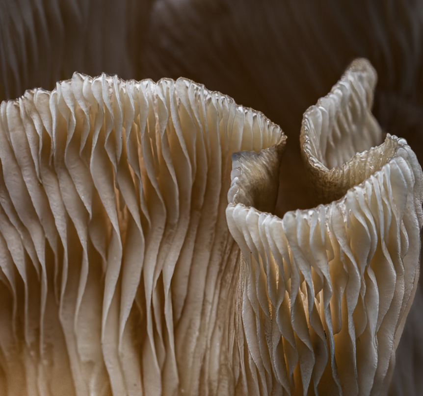 This can be an interesting abstract type image. I think trying to keep it simple and avoid distractions will help give it more interest. I like Cindy's crop or as an alternative my crop below. Both try to make the image clean and simple. Personally I do like the sharpness of the fungus rather than to soften it, but that may end up being a maker's choice. I absolutely do not like the extra piece in the lower left corner. |