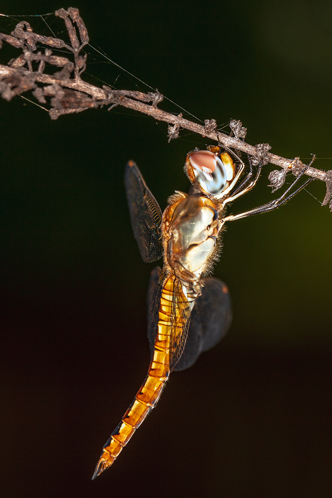 Larry, Thank you. I shot it at F13 to get as much detail as I could, I should have also tried to get a shot from the back so I could recover the wing details. I did not make any efforts directed at the wings specifically. I will make that something I try to improve the image. I did not try to clown out the top of the image, I should have done better boarder patrol here. I guess at the time I thought that some of the stick was there and did not consider this, I will. The F13 setting is the setting on the camera but the lens itself is no longer a f2.8 end to end due to the tube I attached, I will see if I can find a table for the conversion of apature when the tube is attached. I just usually go outside and take a test shot in the light in the area and adjust so I may use the lowest ISO setting with the highest shutter speed I can get with the hand held, also the flash will not recycle fast enough to use the high rate of multiple shutters. I am very happy with your observations they can only improve my image...that's why I am here. |