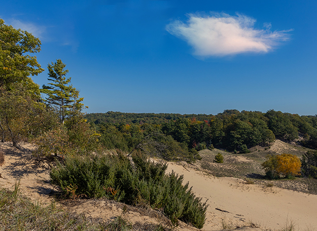 I like the placing of the one bush that has got some colour in it and the general composition. Perhaps the horizon is a bit too central?