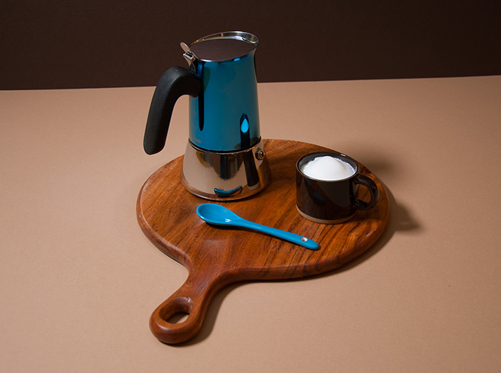 A good simplistic image that tells a story.The colours have all come out really well and your Amazon spoon fits in well with the perculator colour. The reflection is a bit distracting and I would have taken it out.
