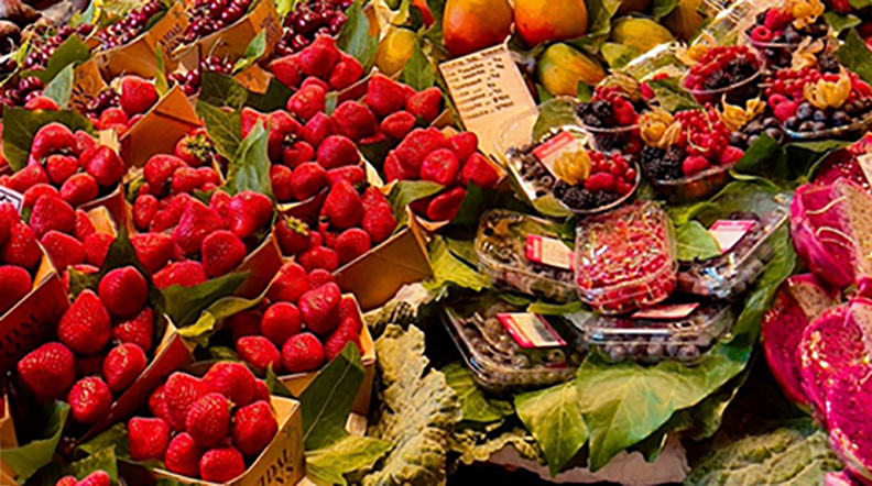 A lovely colourful market scene. Beautiful colours.