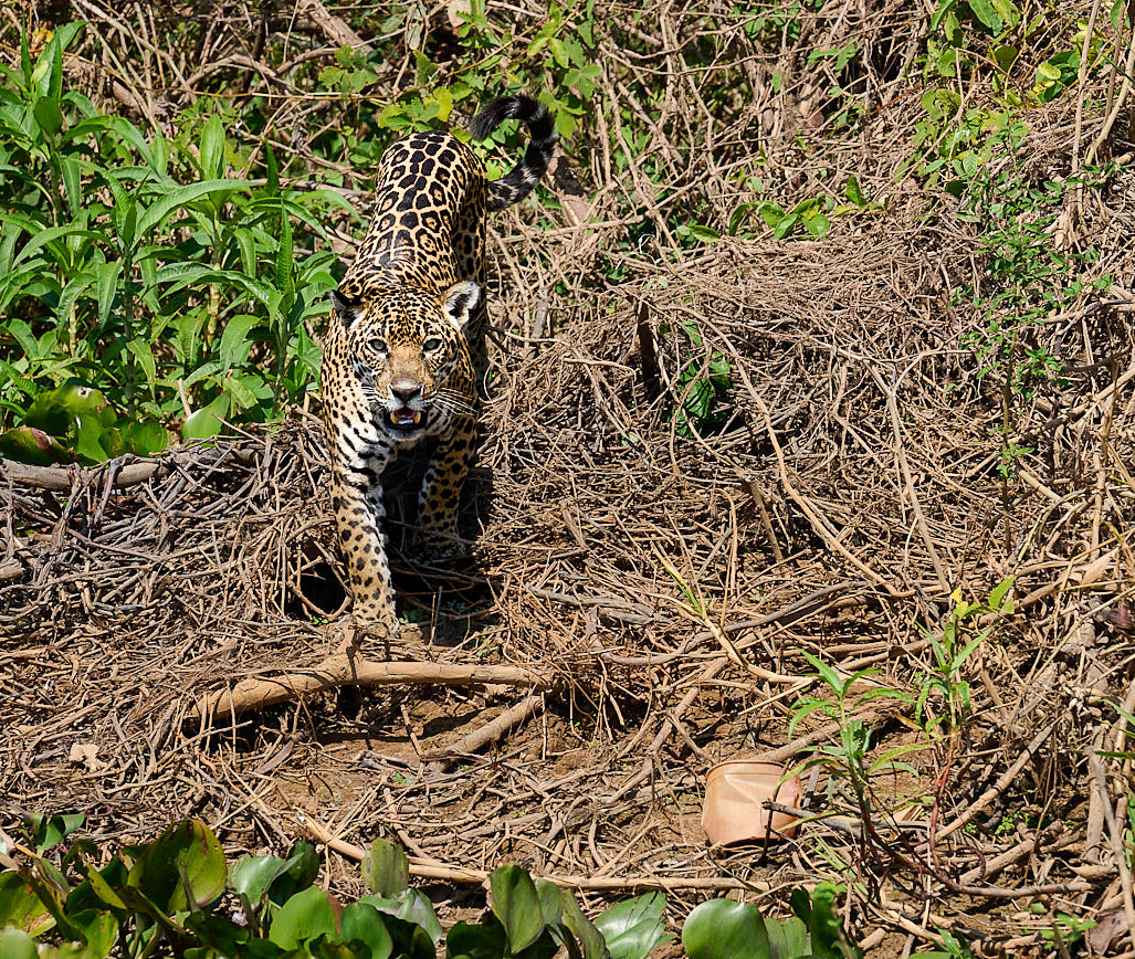 Great shot of a beautiful creature. Shot of a lifetime. I looked at the original and thought a different crop might work. Keep the landscape orientation of the original and crop to show the cat in the open area, leaving a small amount of foliage around the edges as a frame. See attached. |