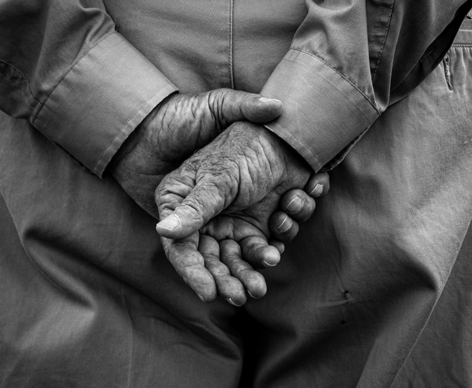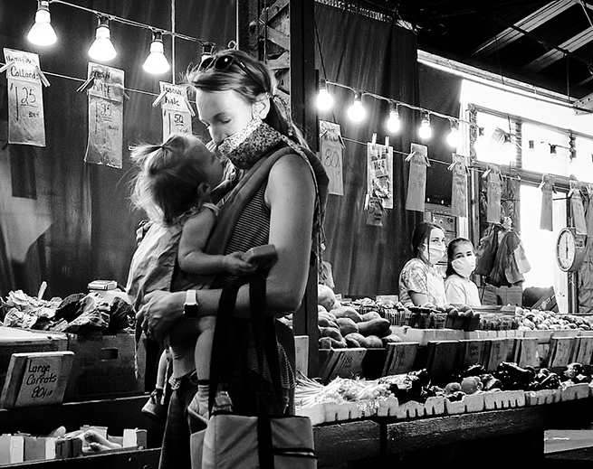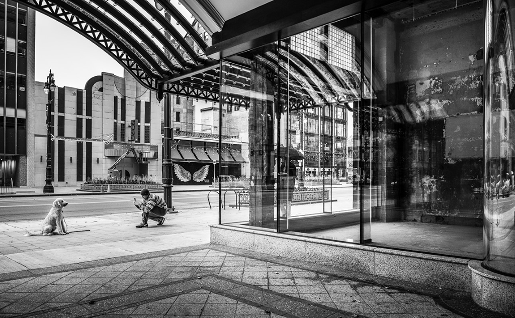 Funny Angela. At first I thought that the picture was the guy, till I read the title. Excellent title, and now I get it. Nicely seen. I find the vertical being off distracting, and I would straighten the vertical, and add contrast, and deepen the blacks, and bring out the whites, as it appears in the mid-tone grey. There is a little white line on the right and I would clone that out, but it might just go away upon straightening the vertical if you were to do that. And I would crop up from the bottom, as that little lip is a detraction, but leaving and making the horizontal edge is a very compelling leading line supporting the picture. His expression is definitely clear that he "is not looking." Tells a nice and respectful story. |