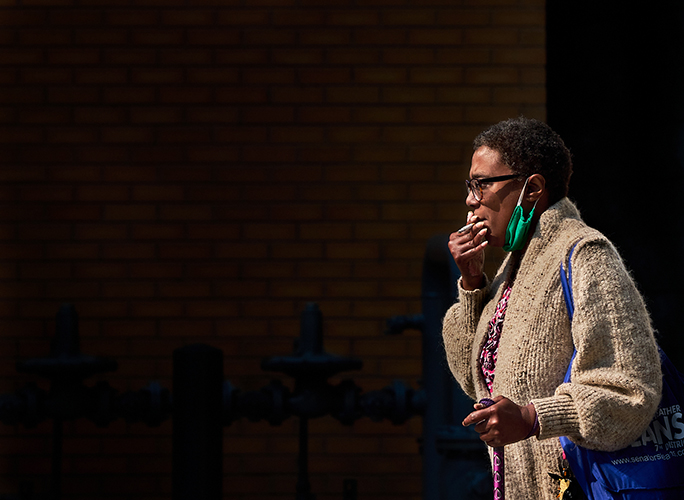 Pete, what do I think? I do like it, played with it, and thought about it. I usually do a tight crop, but here I have been trying to get more context. I am conflicted, as I do like the tighter crop, lean that way, as you modified. As this forum is for feedback, I left it less cropped, and asked and hoped others would make comment. You have and I appreciate your input. I need to give it time, as I do in a firm way agree with the framing you did. What is like is it is simpler, and I see the cigarette and her expression better. Much appreciated. Thanks. |