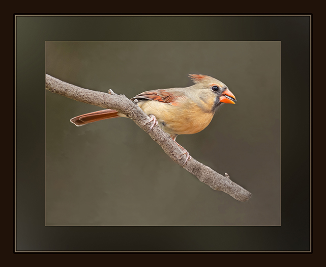 Very nice. I like the shallow depth of field and I like the presentation very much, although I would be curious to see how it might look with a dark gray where you have the whitish border. The drop shadow is perfect. |