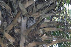 The lens I used was a Tamron 16-300mm Teli. It is a very sharp lens. This was taken at a nature park, There must have been 10 people standing around looking for the Owl. It was a very tall Palm tree, set back from the path, amoung other trees.If you look at my responce to Glenda, and the photo attastched, you can see how hidden the Owl was. |