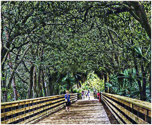 Hi Bev. I find that you eyes go to the walkway, insteading of to the end, where the two lines converge. By cropping of the bottom your eyes still go to the walkway but continue to the merging point . |