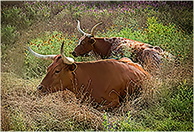 The grass looks like it is over sharpened.I don't know what the spots on the rear cow is? |