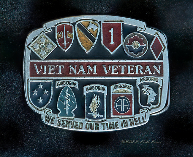 Keith, I like the picture of the Vietnam Veteran Belt Buckle.But I find a lot of spots all over the buckle, which can be removed.I went over most of these white spots, using the photoshop "spot healing brush tool. This is what I got. |