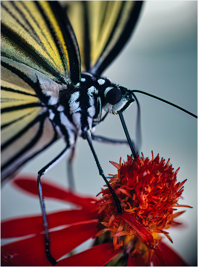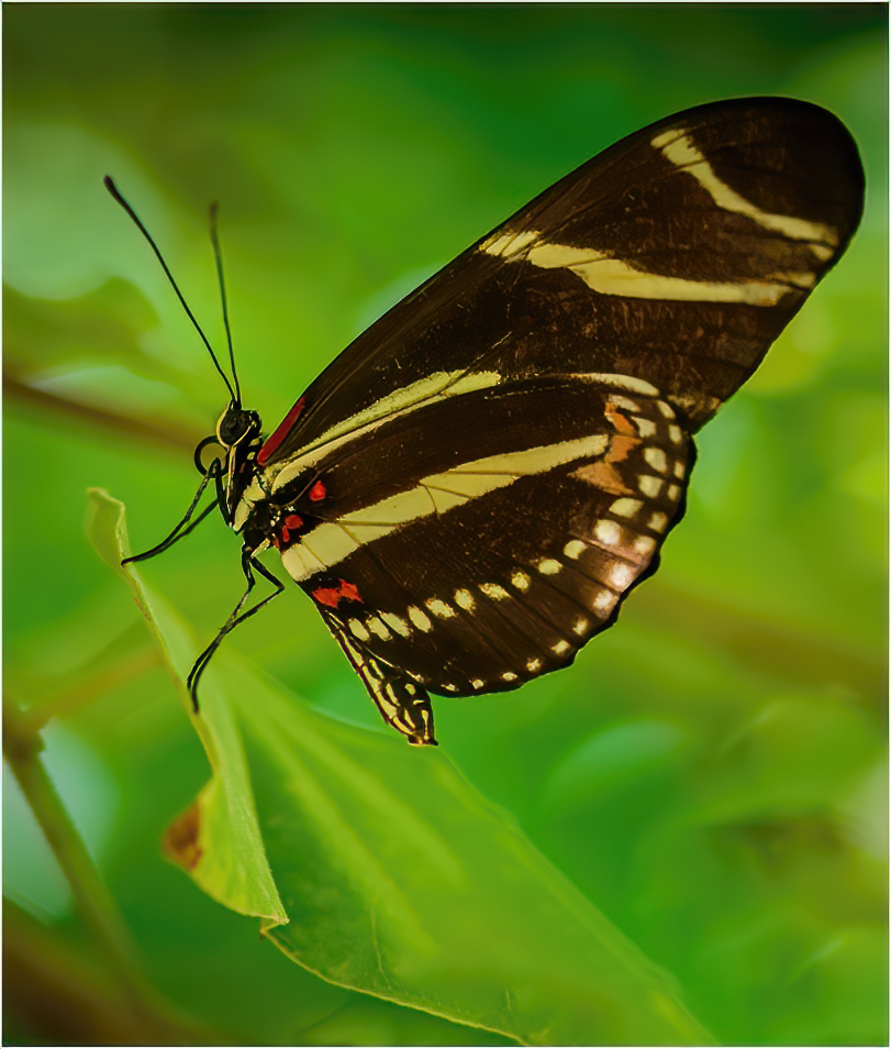 A very nice image of a butterfly. You did a nice job with the background. My suggestion, would be to remove the other butterfly wing and crop some of the bottom. The brown tip on the leaf, I would leave. I removed the wing and cropped some off the bottom , Ran it through Topaz Denoise Ai and Topaz Sharpen Ai. This is what I came up with. |