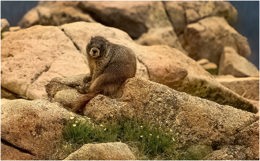 Sarita, A nice shot of the Marmots and the flowers on the rocks in front among the rocks. My eyes go to the out of focus rocks behind the Marmots. What I did was crop the picture from the top and right side. I then darkened the out off focus rocks, and it seems to help. What do you think? |