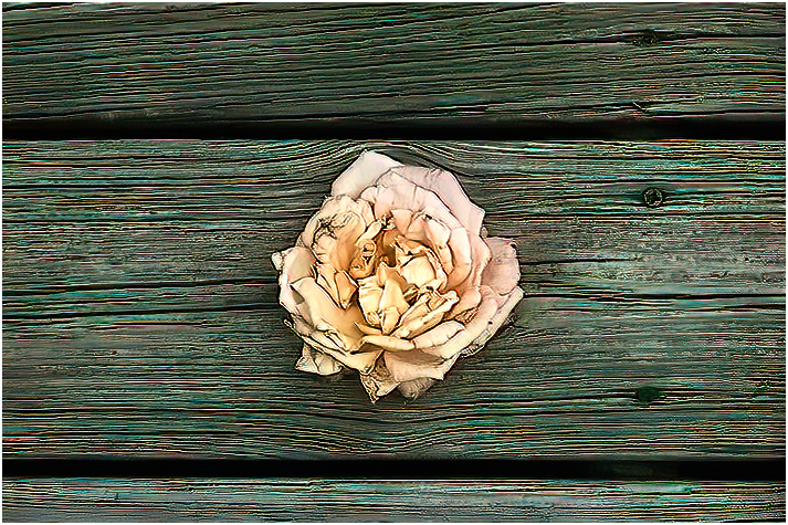 Looking at both images, I think I like the Colored image. I don't see much of a separation, between the flower and the wood in the B/W version. I played with the colored image in Topaz and this is what I came up with.