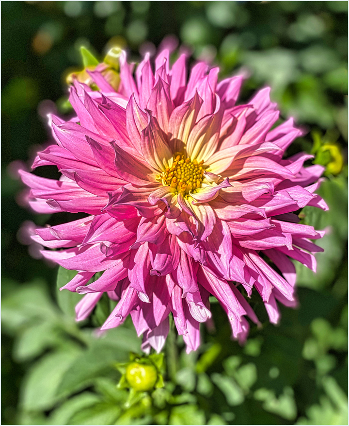 Good job! a very nice image. My only suggestion would be to crop a little from the top and bottom of the image(this would bring the flower closer.) I would also remove the color border, as your eye goes to that, then the flower. If you use a fine white border (3pix) around your flower ,it would bring your eye into the flower. |