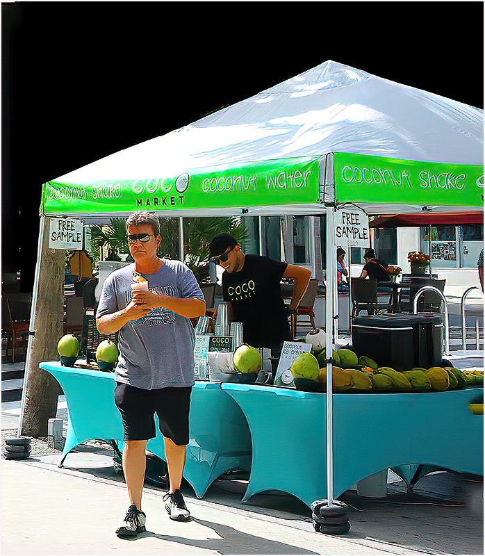 It's a nice streets scene. but the image needs straitening. It looks like he is enjoying his coconut shake. |
