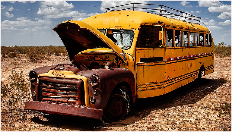 Nice image. What I did, I went into Topaz Studio 2. I then ran it through Topaz Denoise and Topaz Sharpen. Did a tight crop, removed the telephone and wires. Then went into Topaz and used the Dark and Dramatic, which darkened the shadows and rust on the side of the Bus. This gave a little more punch to the image. |
