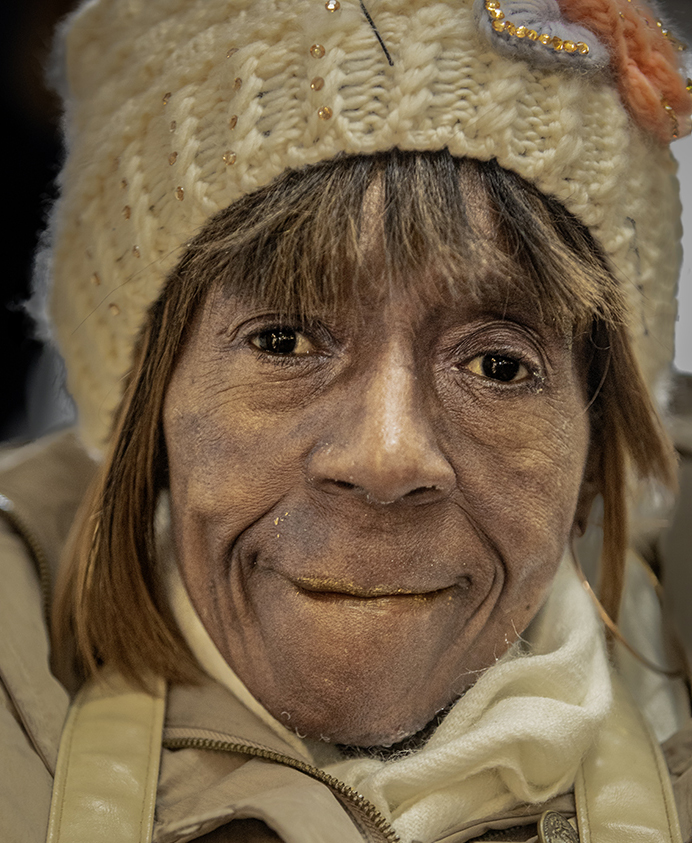 A great face, my only comment, as you have a tight crop on top,, crop some off the bottom, which makes her stand out more. Great shot. |