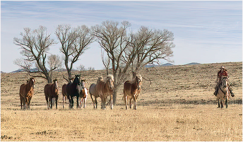 A nice shot, but you left out the action. The cowboy is herding the horses. I went back to your ordinal image, Cropped the image, ran it through Topaz DeNoise AI and came up with image. |