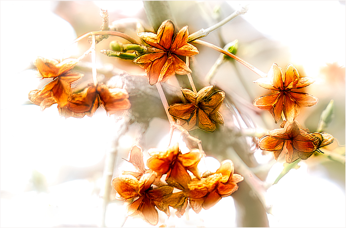 Hi Mary, I like you artistic image, but I feel you have to much to much space around the flowers. I did a tight crop around the flowers ,removed one flower, which was standing on the bottom of your image. I then put it through Topaz Studio 2. I then into DeNouise AI and Topaz Brightness and Contrast AI. Hope you like my results. |
