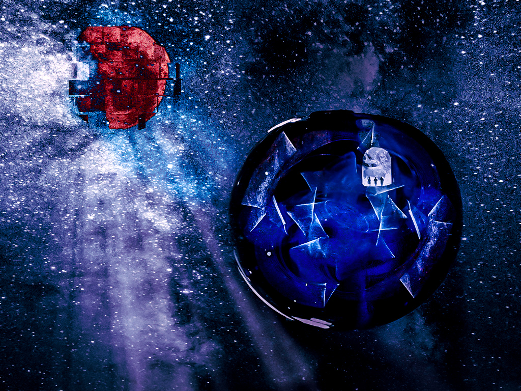 I tried to enlarge the figures in a VF, but the shape didn't work well, so I tried adding and deepening some color in LR to the overall image to enhance the outer space feeling. See what you think. |