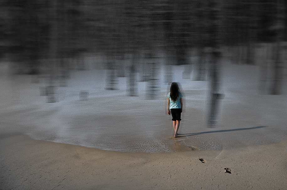 Love your blending of these two images and the muted tones of blue, black and tan. A nicely conveyed theme of your daughter's journey!
