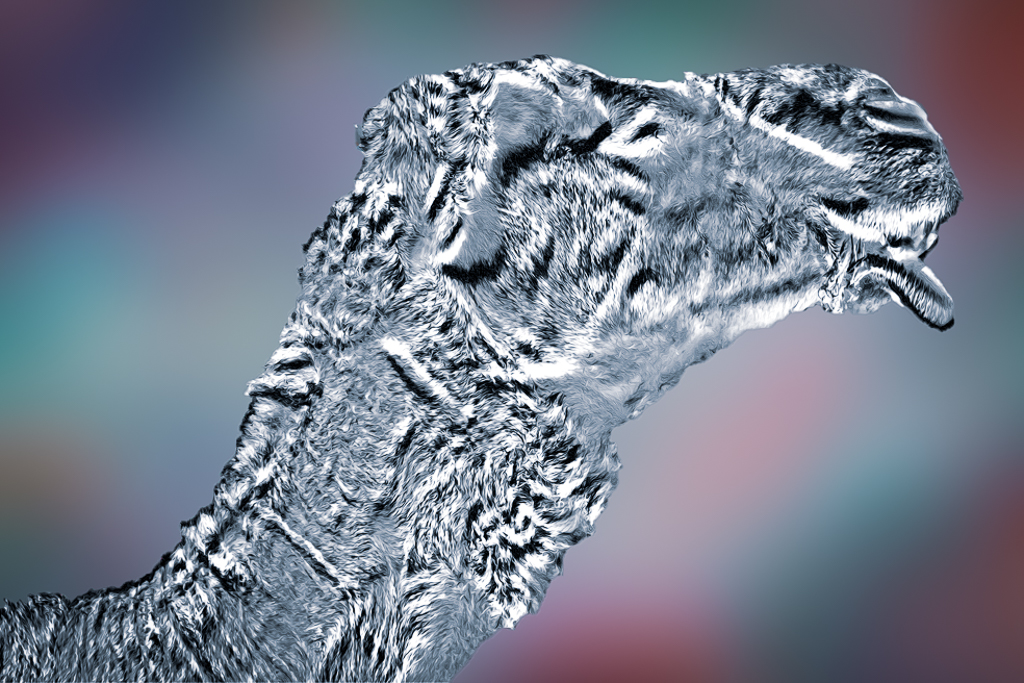 My first impression is that you were possibly looking for a 3D effect for the camel, and I think the bas relief filter gives the feeling of 3D. However, for me, the background competes with that feeling because it over powers the camel. I wondered if there was a way to enhance the 3D feeling, so I took the image into PS, made a selection of the camel and then blurred the background of color. I thought it still needed something, so back in LR I used the Cool Light filter and came up with this effect. |