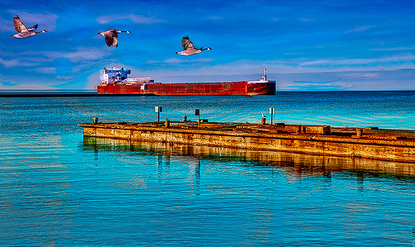 You mention that the geese should be reduced in size, but I disagree. I think they are the perfect size and they add interest. Great job on cutting them out! I do agree with the comments about the artifacts, they are obvious in the image. I took note of a couple of things to share with you. One is that the horizon line is dead in the middle of the image and gives the image a very static feel. The other is that the all the blue is quite overwhelming, at least to me. I took the liberty of re-working the image and reducing the amount of sky. And to add contrast, which in my mind creates more depth, I tweaked the color of the sky for you to compare. |