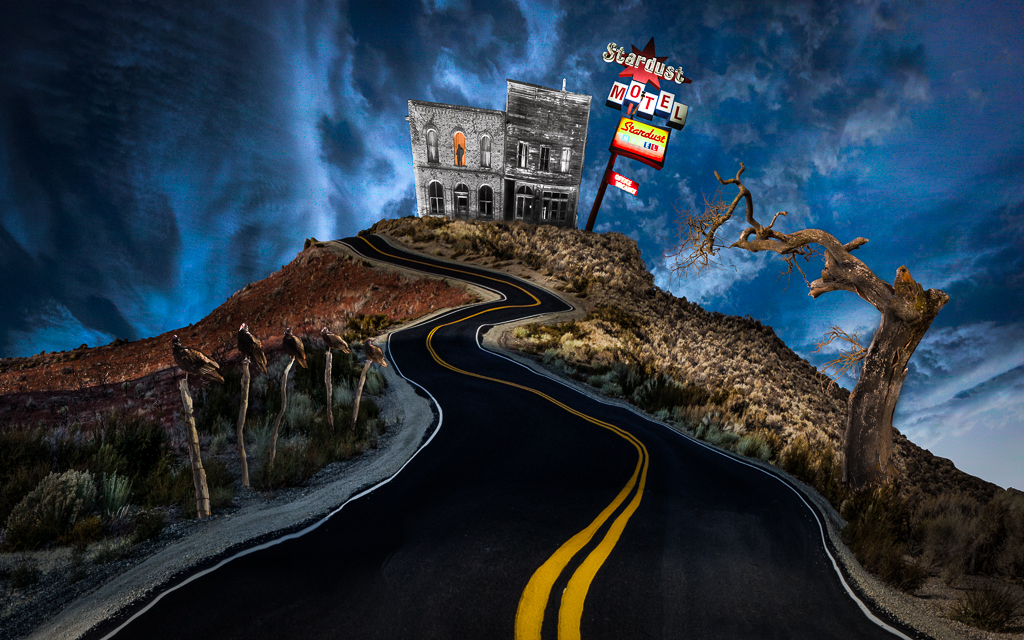 Tom, this is really cool. I love the title and the story, it is indeed very dreamlike. The vines hanging down over the tunnel and the birds are a great touch. One minor detail for me is that the road on the left side of the tunnel starts out well defined but then blurs and bends out to the left. I would like to see a straighter defined edge that follows the same angle of the white double lines. |