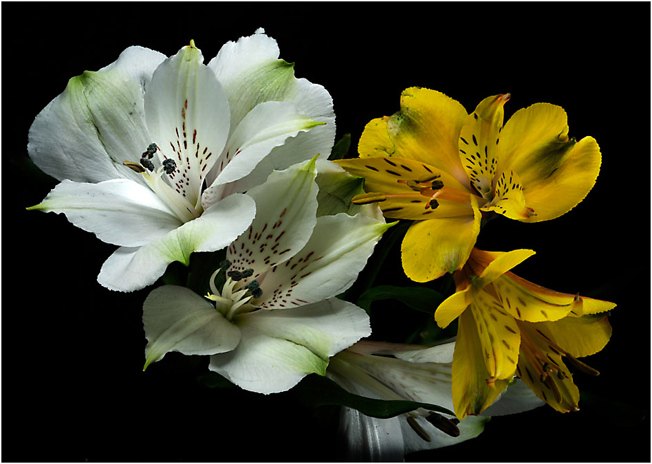 I have participated in several Clemons clases and made a quick edit based on what I learned before reading Donna's important suggestions about this lovely alstroemeria, one of my favorite flowers to photograph. I cropped in, eliminated all border distractions, and increased space at top using PS Context Aware fill. I recall Kathleen emphasizing the importance of giving flowers room to move and breathe. And, looking at this edited image, I would add black space to bottom, too. |