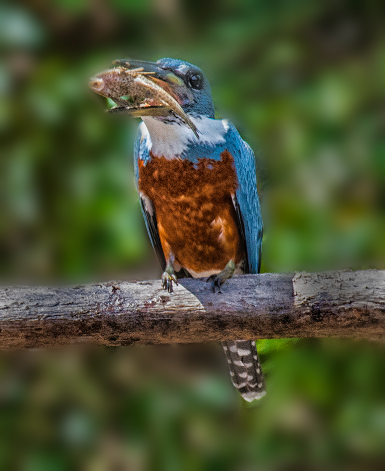 This is a very good capture, Richard and it has enlarged well. I do find the background a bit distracting since it clashes with the mottled brown in the King Fisher, making the image a bit confusing. I think it would have been improved if you had used a wider aperture to blur the background more. I've made a rather crude attempt to simulate this using a Gaussian blur layer with a layer mask to remove the effect from the King Fisher, which I hope shows you what I mean.