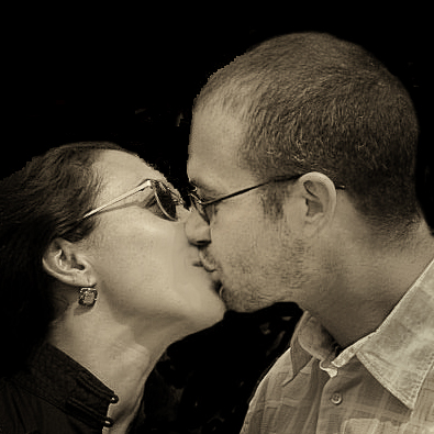 Firstly, using the original image and after tidying up some of the outlines of the couple's heads, I did a much tighter crop to concentrate on their faces and emphasise the diagonal line running from the bottom left to the top right of the image. Cropping to a square format also emphasises this. It also removes a lot of the shirt which is distracting. Then, I used the Nik Darken / lighten Centre, with the centre place on their noses, to brighten the faces in relation to the rest of the image. I converted the image to monochrome using the Paper Toner filter. Viveza was used to brighten the faces more and to darken the shirt. The Paint tool was used to remove the strong shadows around her mouth and nose area and, finally, it was sharpened using the high pass filter. I hope you find my version interesting.