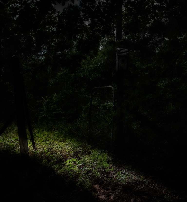 You’ve cropped the image well, Oliver and I like the off-vertical posts and gate. As an image of the bird house in the context of its environment, I’m not sure I can suggest anything to improve it. If you want it to be about the mystery of what it beyond the gate you could give it a much more dramatic treatment. There is a Nik filter called Midnight which I use occasionally and which can give you some dramatic effects (e.g. http://bit.ly/themanonthebus).