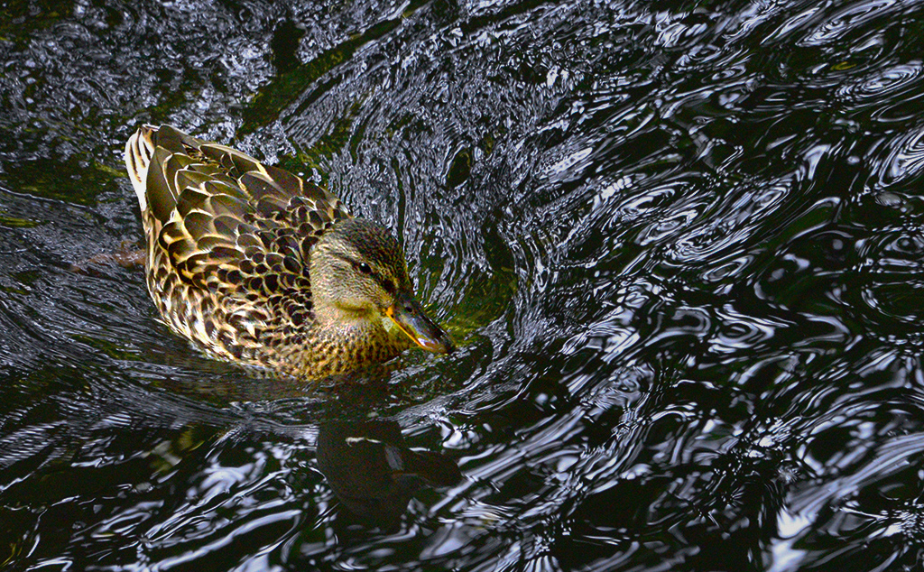 I really like this image. The water ripples make for an interesting image. Just a couple of thoughts. My eyes are drawn to the right side of the image and that may make an interesting abstract just by itself. Another thought was to darken the water which will make the duck and it's reflection the main subject. I used the radial filter in Camera Raw and it seemed to bring the reflection out a bit. All in all, I like what is going on in this picture.