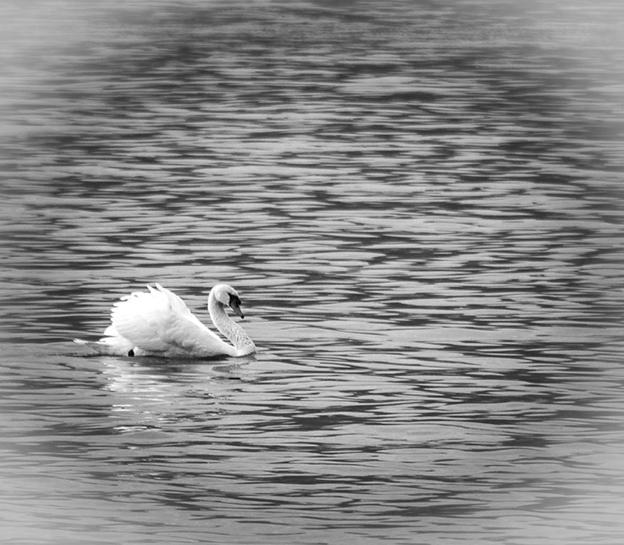 I think works well with you image. I agree with Arun's comment about cropping. The Swan seems a little lost. Just as a suggestion, I used a Level's adjustment in photoshop. Used the white eye dropper on the tail of the swan, then used a white vignette instead of a crop. Just my thoughts.