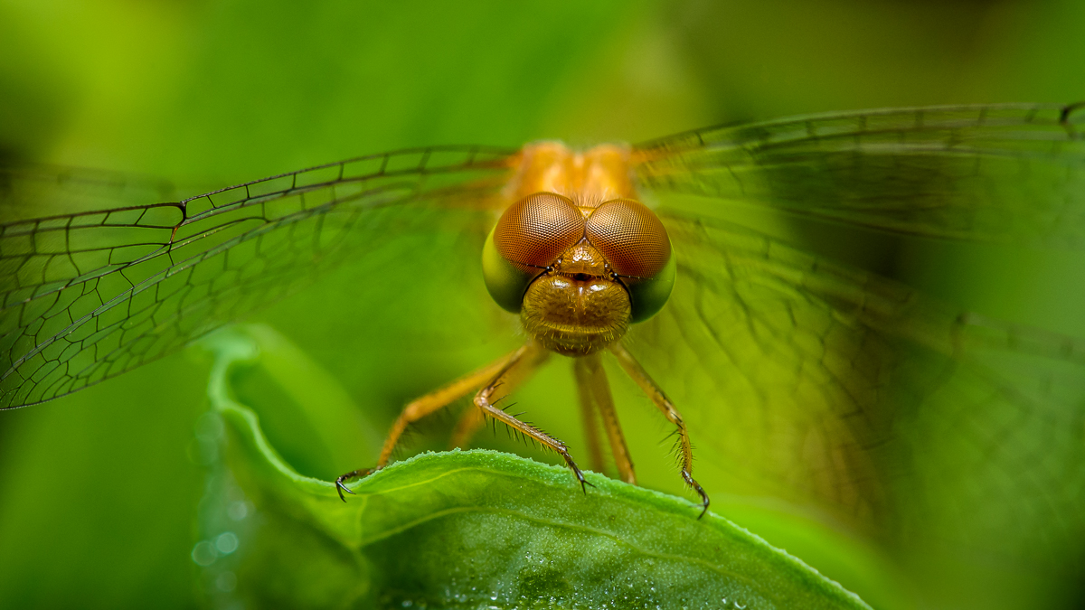 Wonderful colour and clarity in both the grasshopper and the leaves. I like the framing effect the upper leaf gives to the grasshopper. Nice and sharp with both antennae in focus