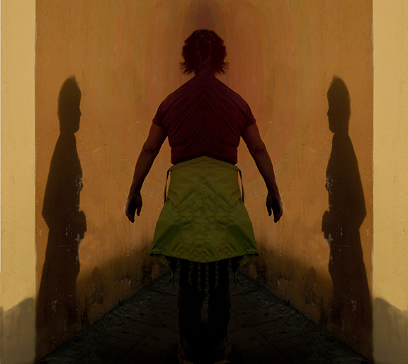 To my eye, the shadow looks like it's painted on the wall. The whole image has a painted feeling reminiscent of Diego Rivera. One thing I noticed is the lack of perspective behind the central subject. I added black and red shadow layers in gimp to emphasize space behind the subject. |