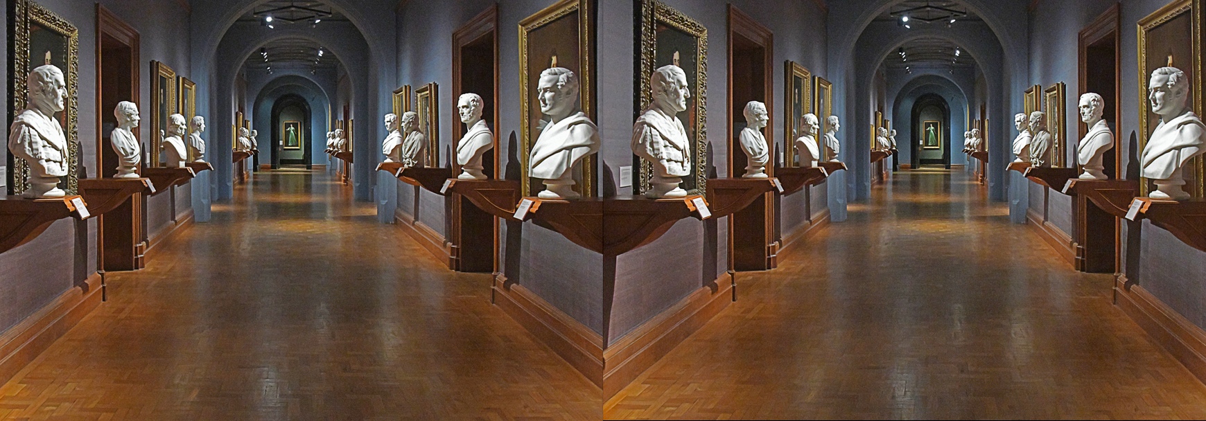 I opened the image in 3dSteroidPro, and adjusted the left image to correct the window and lessen the distortion of perspective. This caused some edge disparity, which I cropped to eliminate edge ghosting when viewed as anaglyph. Notice the window is no longer violated, and the depth of the left and right platforms are more natural. I also boosted the color saturation by 10% to warm up the long hallway.