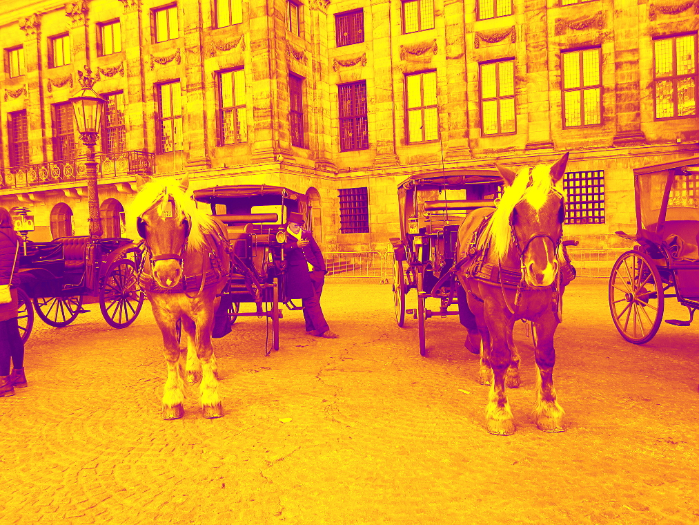 This historical image was taken by me, on the 24th of April 2018, at Dam Square in Amsterdam. My thoughts on psychedelic art are fairly well known in this group. Posterization is thought to have originated in the USSR, some time before 1950. It was originally created as a technique to reduce the amount of ink used in poster printing. In the mid 1960s, poster artists started using the technique with vibrant new ink colors, resulting in the psychedelic look now widely associated with it's use. |
