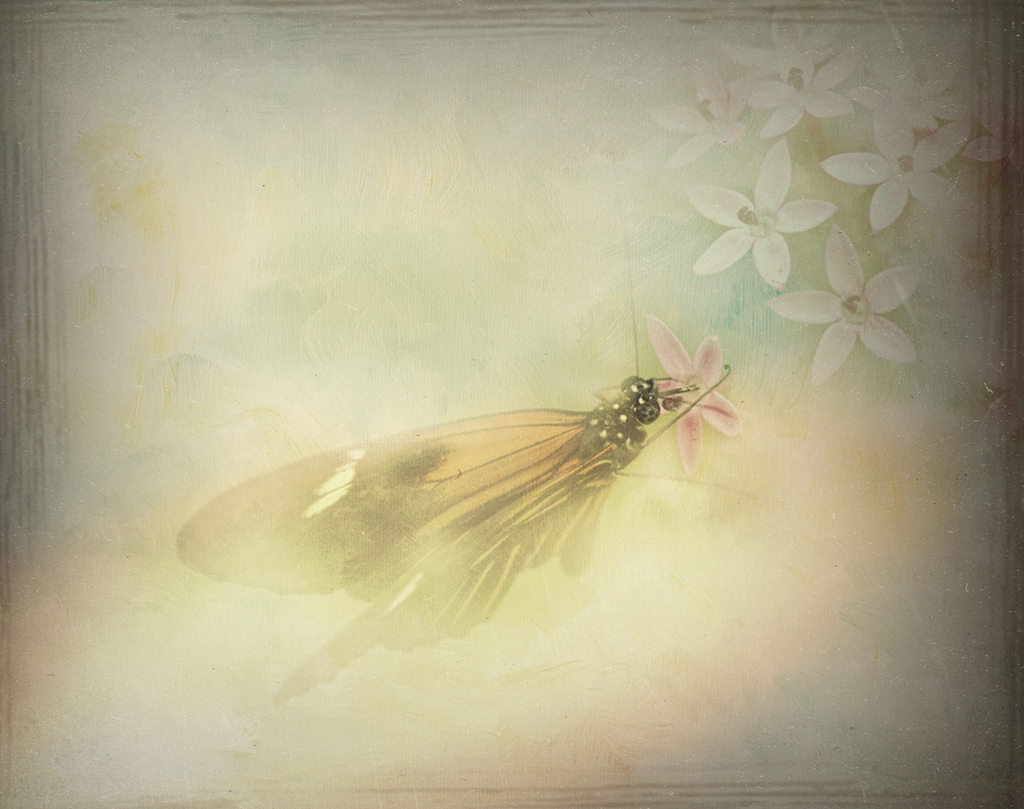 The little floral anthers were positioned by me with slight saliva on my fingertips and gently tapped down, ensuring no saliva went onto the lightbox .(In fact i can see a spot of it here.)