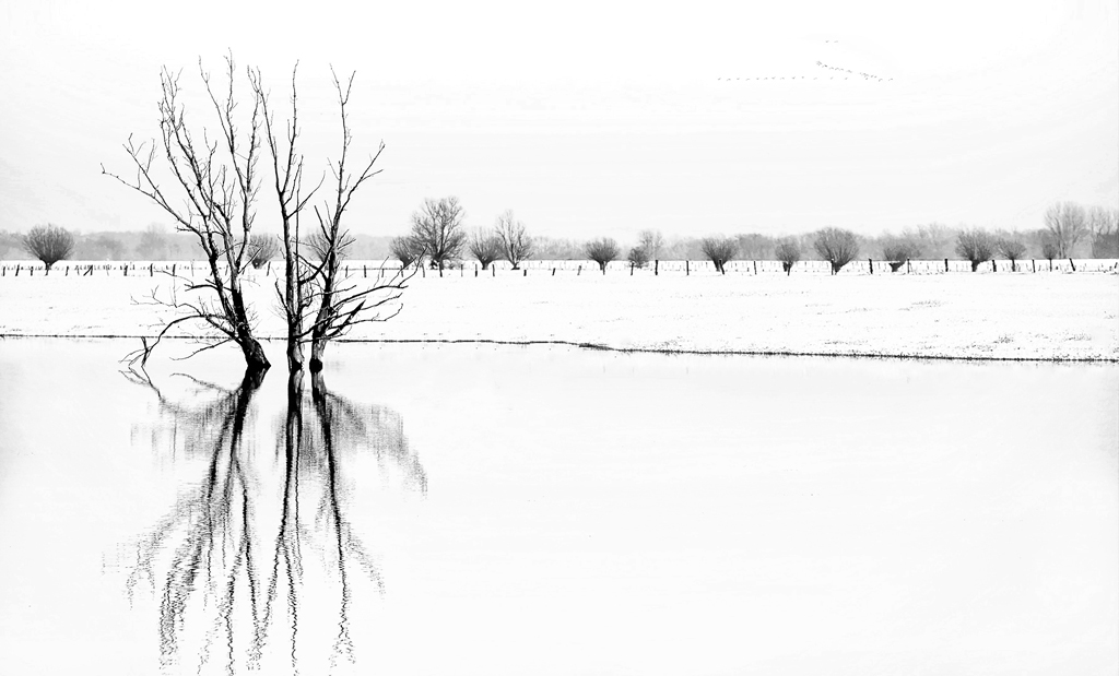 Hi Dirk, beautiful high key image! In the image, I like the simplicity of the composition. Beautiful reflection and very nice shape of the left branch. I love it. Wonder if you accept modification of the scene or not, such as removing some other reflection and the posts. I feel it might look better if only this tree and reflection w/o others. I did a small modification as the attachment. Dirk, you did something that I want to do but haven't succeed yet. Thanks for the inspiration. I'll try some of my own snow shots later. |