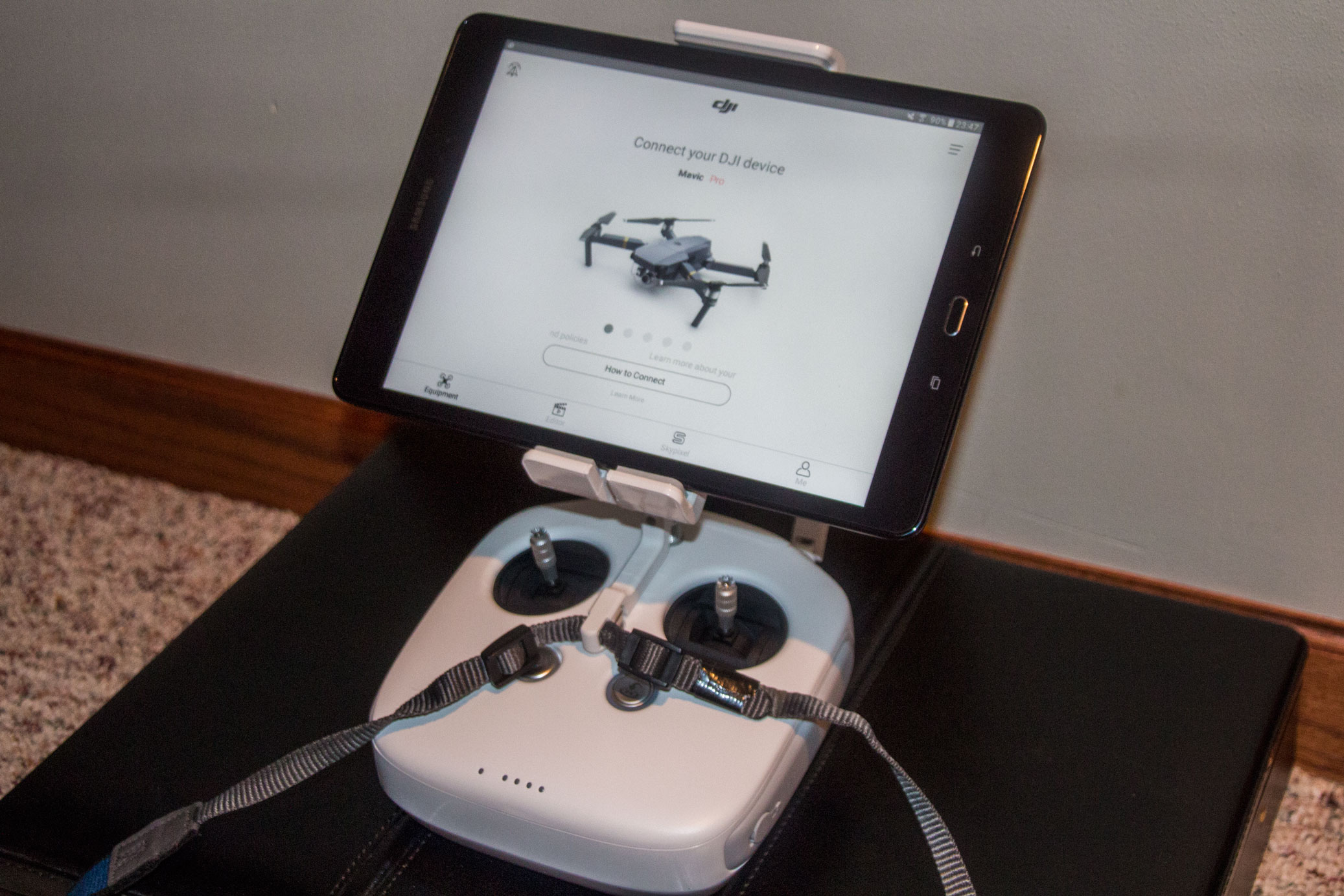 My phantom 3 drone uses it's own remote control with a tablet attached for viewing. The RC has joysticks that are used to fly the drone. (see the Picture)