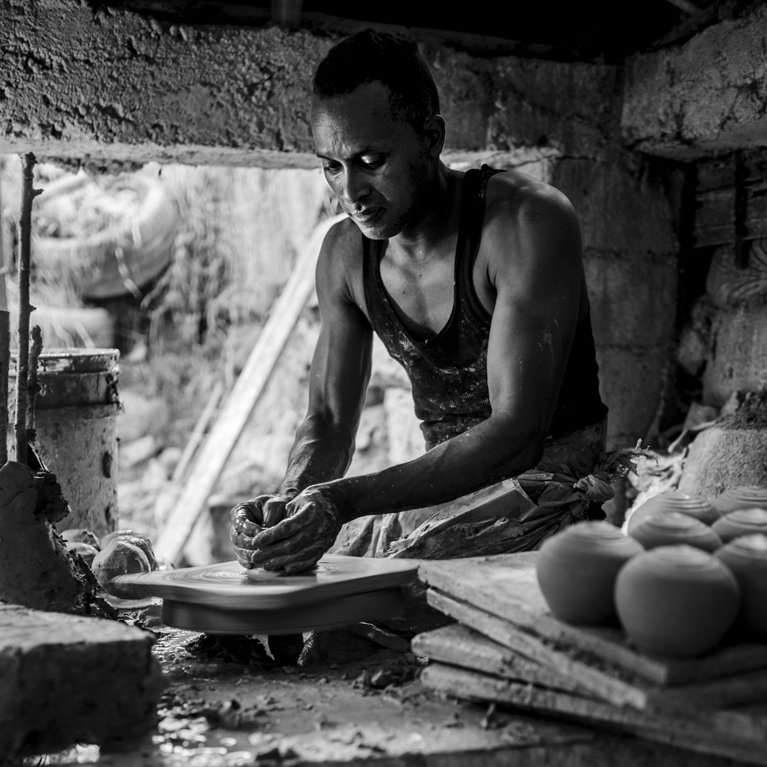 My comment was: I found this a beautiful environmental portrait. The light coming from the back beautiful highlights the man's body, arms and brings one's attention to his hands, the focal point of the story. My attention stopped there. At first I did not understand the middle part, then I saw the man's feet. This added another dimension making it an environmental photo.