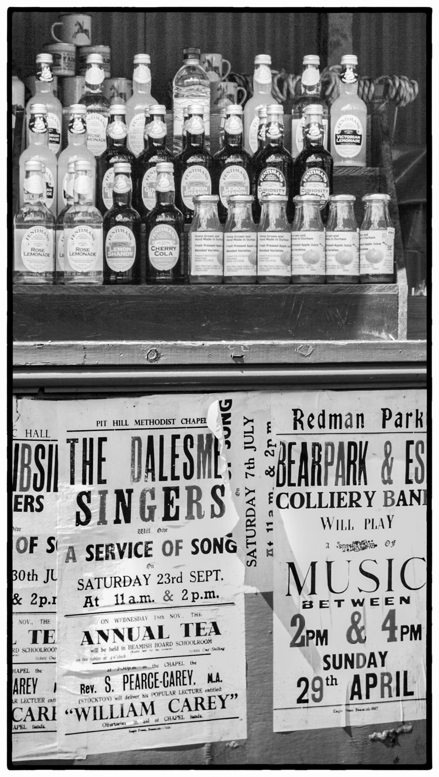 Your subject lends itself well to monochrome, with good shapes, light and shadow. After Tracy's comments, I looked at your image again wondering why I kept looking at the bottom of the image rather than the whole image when the subject was the bottles. I believe it is because of the lighting. The lighting draws my attention to the lower part of the image and I focus on reading the signs and not looking at the bottles. Therefore, I suggested a crop that would draw attention to the bottles.