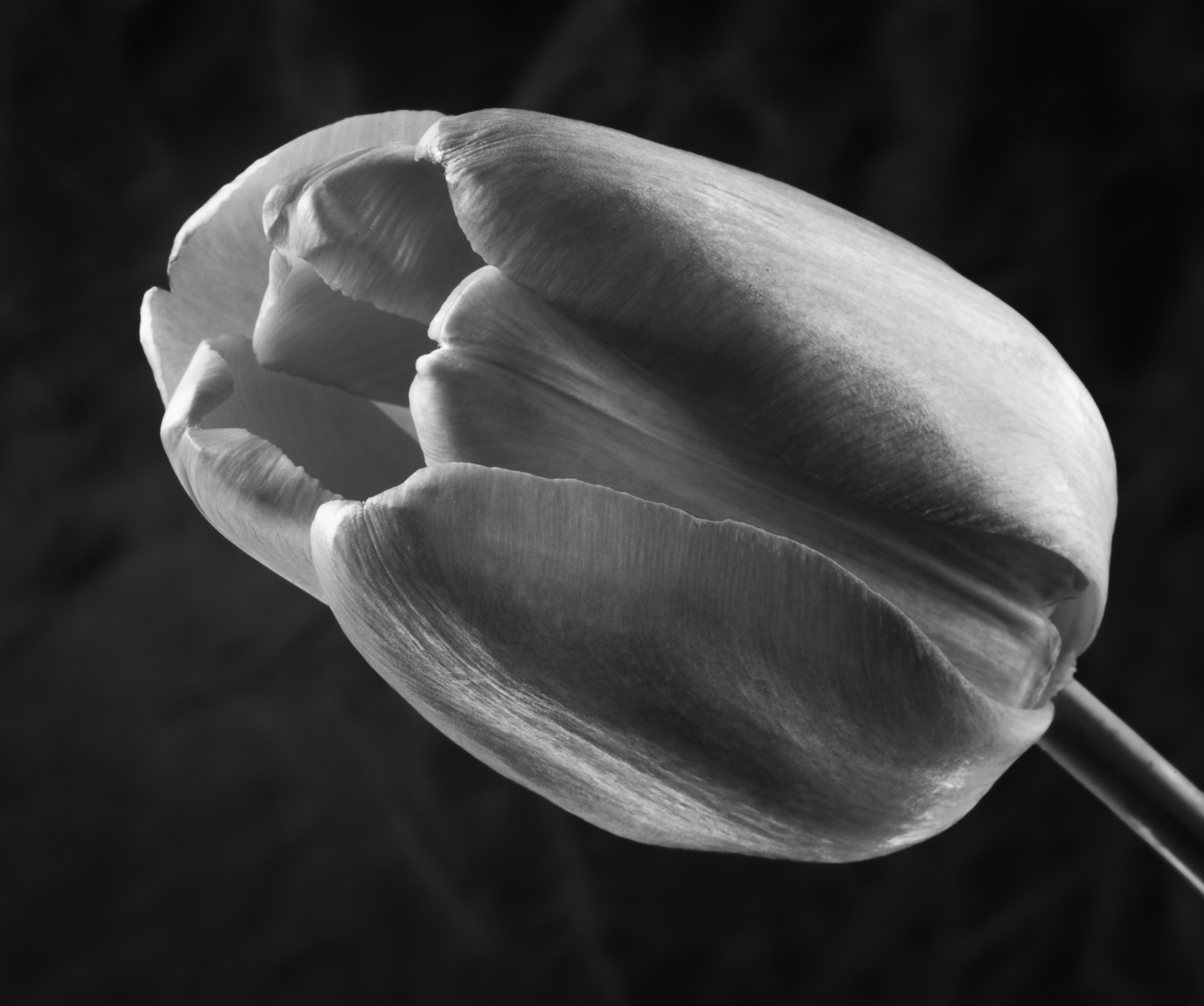 In PS, I selected the tulip, applied a mask, and reduced exposure in the grass to create greater contrast. I also applied a curve with linear contrast but painted out the delicatly lighted area on the back top of the tulip as well as the rim of the tulip. To bring the eye slightly more into the centre of the tulip, I painted white reduced opacity close to the flower entrance. Then I used a Color Efex light centre dark exterior, putting the centre point close to the edge of the front tulip.
