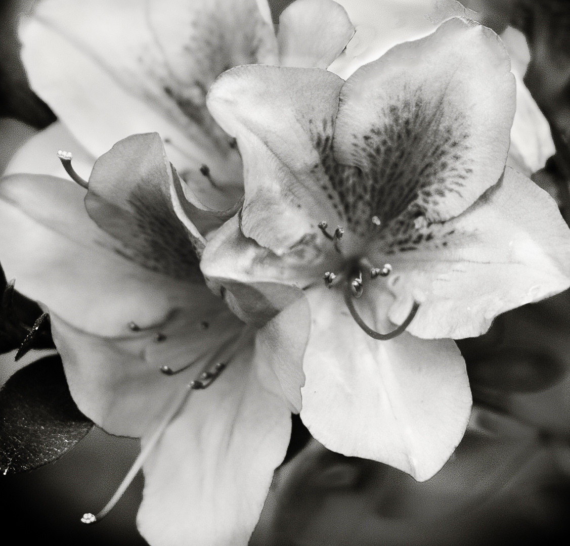 For me, this was a good lesson in the difficulty of photographing flowers with uneven lighting and complex backgrounds and then doing a monochrome conversion.